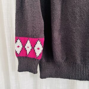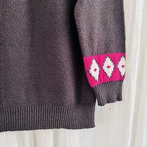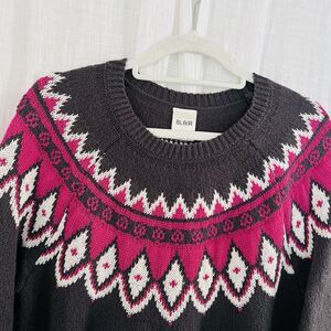 Blair Dark Gray & Pink Fair Isle Soft Cozy Knitted Winter Sweater -Womens Medium