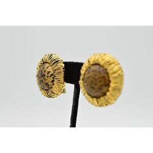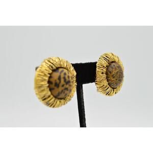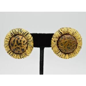 Blair Delmonico Vintage Clip On Earrings Chunky Leopard Gold Signed 1980s 9G