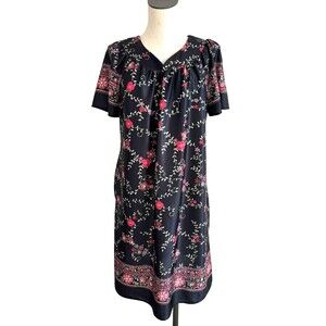 Blair Dress Patio Dress Muumuu Lounge Black Floral V-Neck Size Small? Medium?