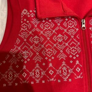 Blair Large Cotton poly blend red zip up vest embroidered sweatshirt gold down c