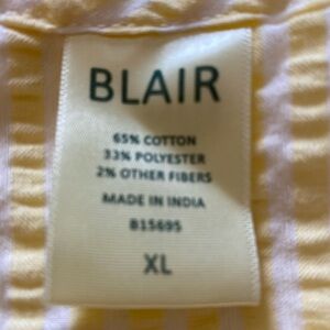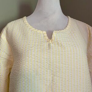Blair NWOT XL Soft Yellow Check Cotton Blend Seersucker Shirt