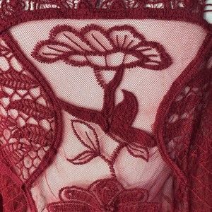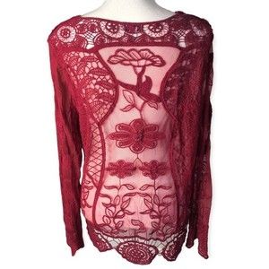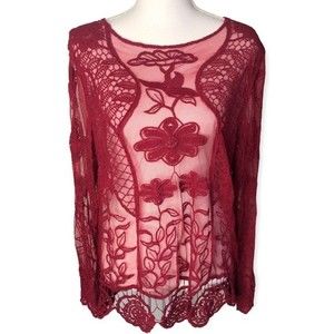 Blair Red Mesh Floral Embroidered Long Sleeve Boho Blouse