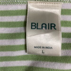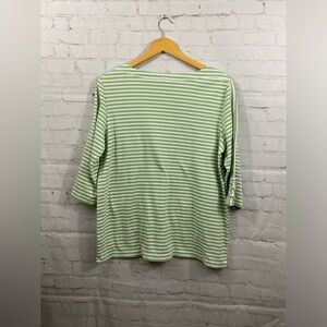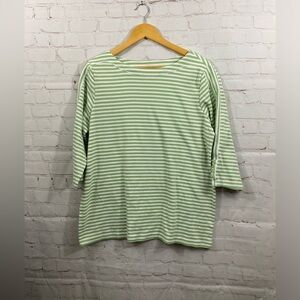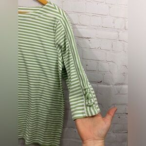 Blair Top Womens Size Large Green White Stripes 3/4 Sleeve Nautical Rope Detail