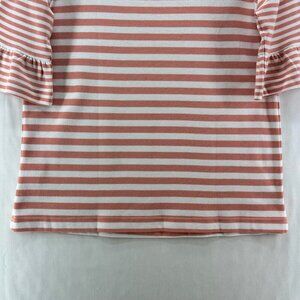 Blair Top Womens Sz S Striped Round Neck Ruffled Elbow Sleeve Cotton Blend Orange