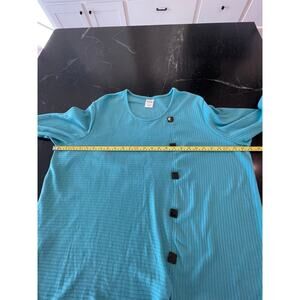 Blair Turquoise ribbed design long sleeve top button detail 3X