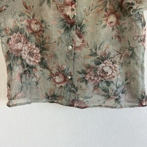 Blair Vintage 90s Women’s Semi Sheer Green Floral Button Front Blouse Size 16 petite