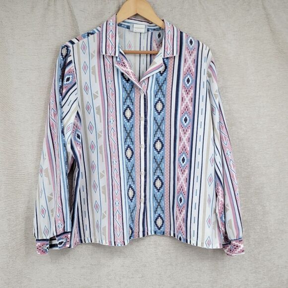 Blair Vintage Aztec Western Pastel Button Down Top Shirt Blouse Women's