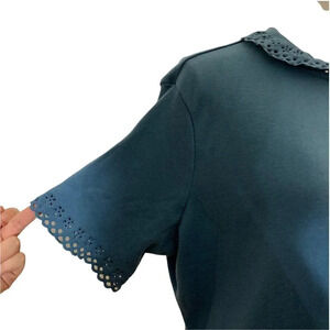 Blair Vintage Blouse Light Blue Eyelet Sleeves and Collar Short Sleeve Large