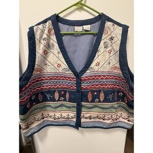 Blair Vintage Vest Knit Embroidered Denim Cottage Core 2XL