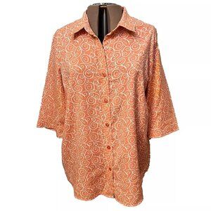 Blair Woman's Sz 2XL. Coral 3/4 Sleeve. Button Up Shirt. Poly/Rayon Blend. B31