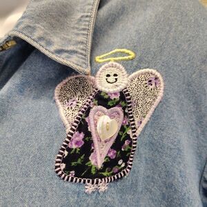 Blair Women Size XL Embroidered Angel Denim Button Down Shirt Top 90s Grannycore