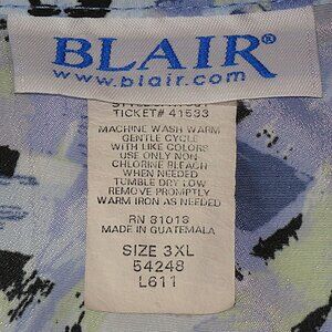 Blair Women's Blue Brush Stroke 3/4-Sleeve Button-Up Vintage Shirt Size 3XL C507