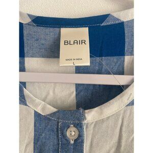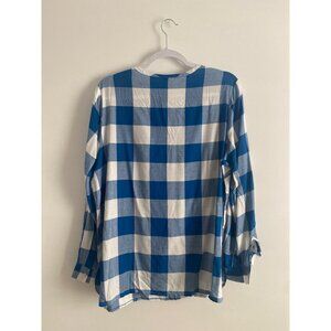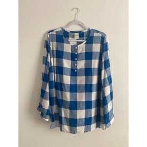 Blair Women's Blue & White Plaid Button-Front Rayon Long-Sleeve Top Size L