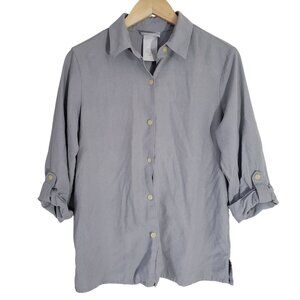 Blair Womens Gray Button-Up Shirt Size M Silk Business Casual Office Staple
