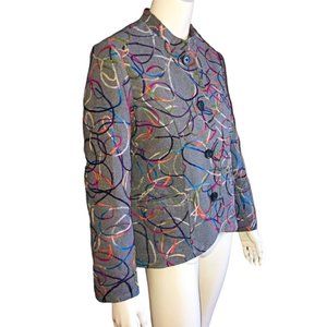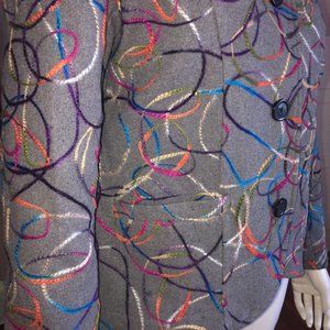 Blair Women’s Gray Wool Blend Blazer with Colorful Swirl Embroidery – Size 12