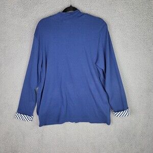 Blair Women's Jacket Sz L Blue Full Zip Pockets White Stripe Contrast