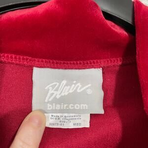 Blair Women's Retro Style Red Velour Quarter Zip Pullover Sweater - Size Medium