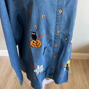 Embroidered Halloween denim button-up shirt - could also be worn as a shirt dress for smaller sizes! NEW without tags