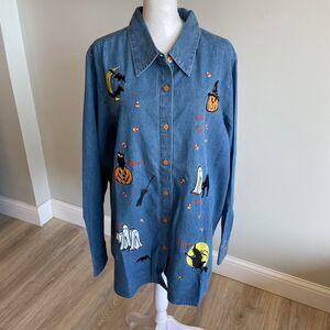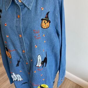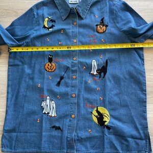 Blair Women's XL Halloween Denim Button Down Shirt Embroidered Retro 90's Granny