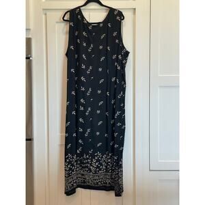 eyecatching taupe flowers adorn this black sleeveless midi - maxi dress, with matching taupe jacket that has eyelet features. older, Y2K Style with shorter boxy jacketthat has shoulder pads.
