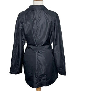 Blair black lightweight double breasted belted trench raincoat womens size L NEW