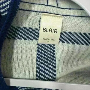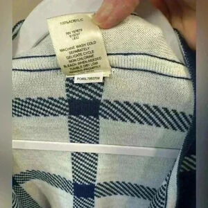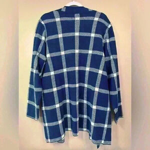 Blair blue white window pane plaid open front cardigan slight funnel neck sz XL