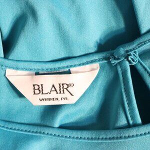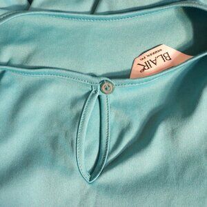 This Blair short-sleeved t-shirt features a keyhole back opening for a stylish touch. With a 20" flat bust measurement, this soft and breathable tee is estimated to be a Medium to Large in size. Perfect for casual wear, it offers a comfortable and relaxed fit, making it a versatile addition to any wardrobe.
