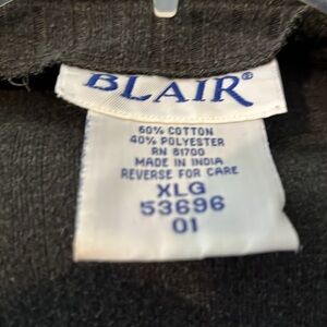 This is a cute two piece top from Blair . Material is a cotton / polyester mix.
