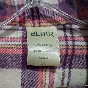 Blair XL Pink Plaid Flannel Button Down Shirt Retro 80s Gorpcore Lesbian
