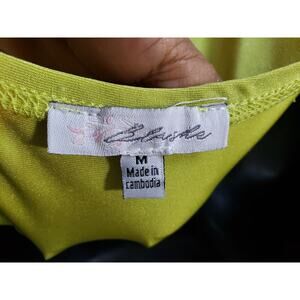 Blaishe Mini Bodycon Dress Womens Medium Lime Green Satin Faux Wrap Square Neck