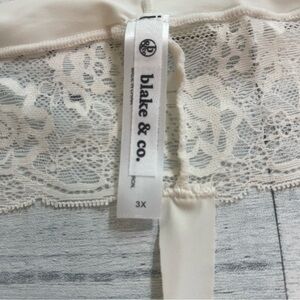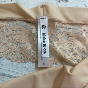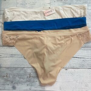 3 pairs, white, nude and blue, lace on all 3, blue air has lace all the way around, white pair has small snag on waistband where the hanger was, cotton lining, white is the only one with tag but all are NEW, colors may vary due to lighting, NEW, this item has not been washed due to being new with tag, no stains or tears, size 3X