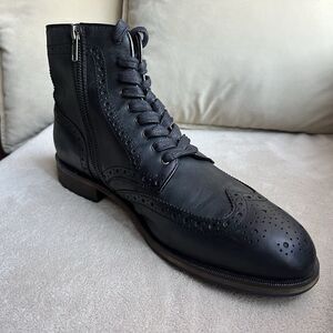 Blake McKay Black Leather Wingtip Ankle Boot Men 10.5 Classic Side Zip Lace Up