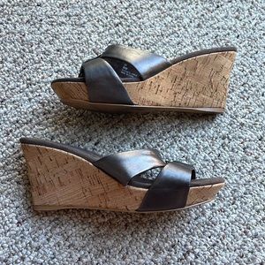 Platform metallic slides with buckle detail on top and cork bottom
