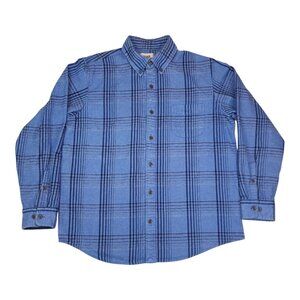 Blake Shelton Lands End Flannel Button-Down Shirt Mens Blue Plaid Cotton Size L