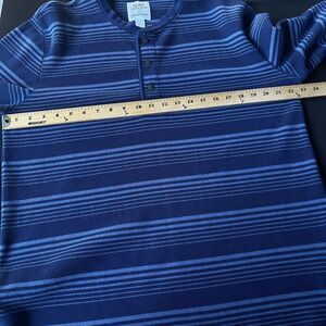 Blake Shelton x Lands End Henley Shirt Mens Large Blue Striped Ribbed Casual