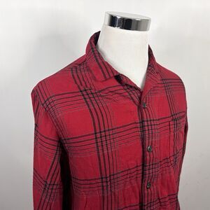 Blake Shelton x Lands End Medium Flannel Pajama Shirt Red Plaid Button Front