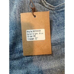Blakeley Womens 3X Light Blue Distressed Flair Leg Jeans 32" Inseam Boho 70s