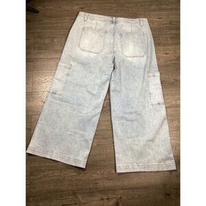 Blakeley Womens Light Wash Blue Denim Wide Leg Cargo Pants 4X Strachey FIT NWT