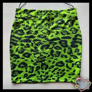 Unworn item. Blanc 2 Piece Club Dress Size Medium Neon Cheetah Set. V-neck top with backless closure. Material is super stretchy. Item stored in pet and smoke free environment.