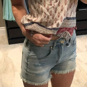 Distressed to impress the on trenders. Five pocket button and fly closure.