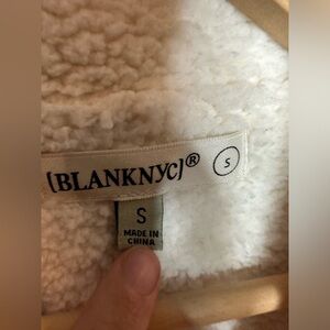 Stylish white zip-up jacket with a cozy design. Perfect for layering.