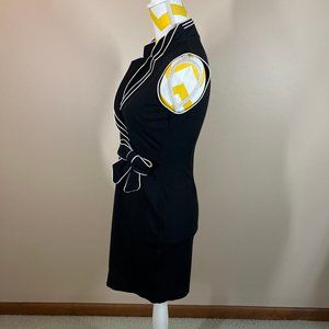 Faint darkening on some parts of the white trim details around the collar front and back.