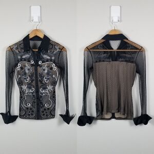 Blanc Nature Vintage Y2K Embroidered Goth Mesh Shirt Size 38 (Cigarette Odor)