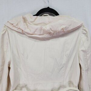 Blanc Noir Belted Coat Size Medium Puff Ruffle Trim Ivory Snap Button Midi