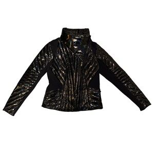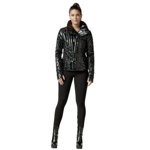 Blanc Noir | Black Iridescent Quilted Asymmetrical Puffer Jacket | S