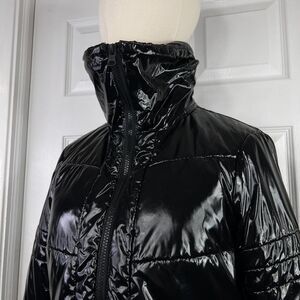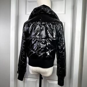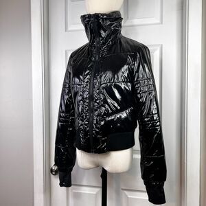 Sleek and Edgy Blanc Noir Compression Down Puffer Jacket in a wet leather style
