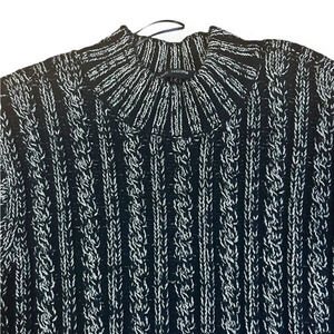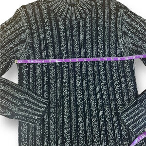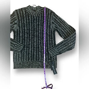 Blanc Noir® Lurex Cable Knit Sweater Size Large Black Silver Crew Neck NEW
