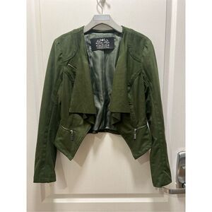 Blanc Noir Olive Green Suede Moto Biker Jacket Open Front Coat size S NWOT