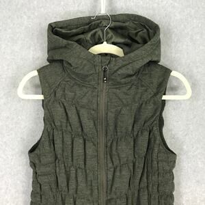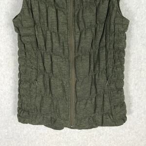 Be by Blanc Noir Vest Women Small Puffer Quilted Hooded Jersey Hiking Activewear Full Zip Hike Climb Camp GORP Outdoors Camping Hiking Trail Zip Pockets Green