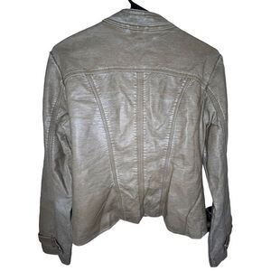 Blanc Noir Faux Leather Zip Up Collared Jacket With Multiple Pockets